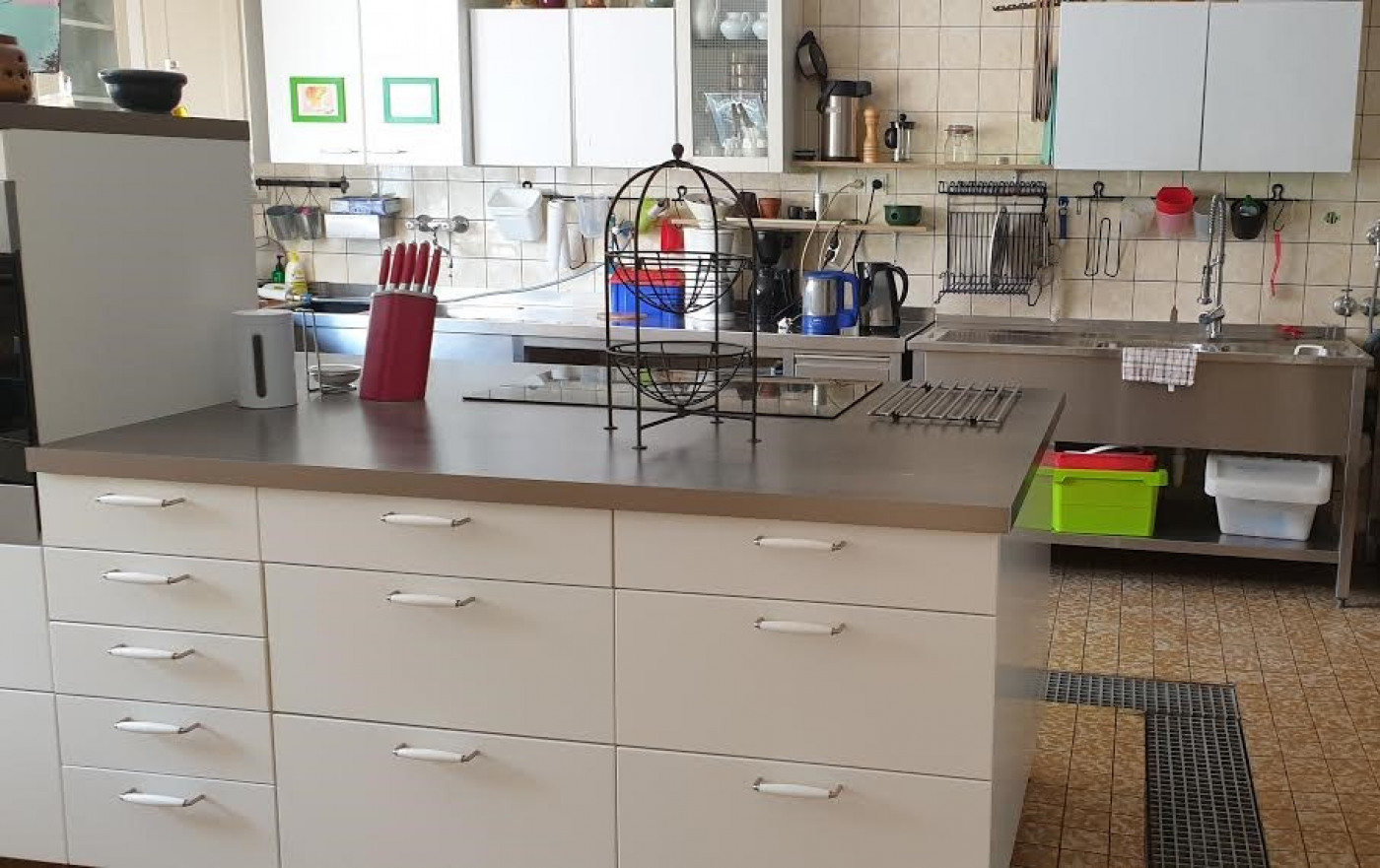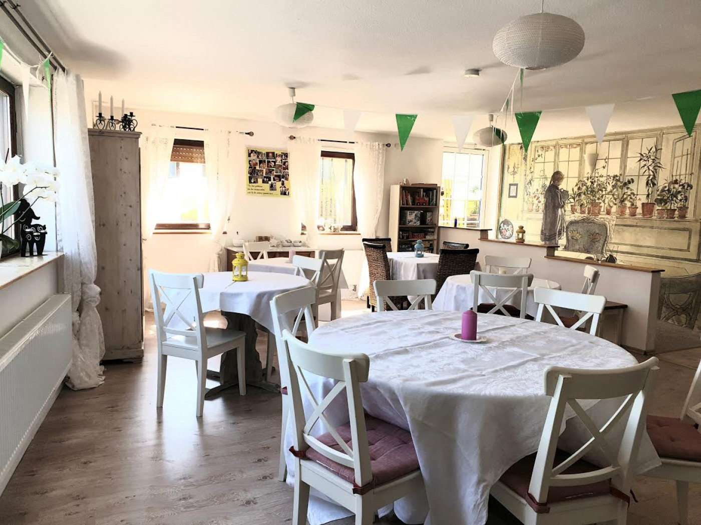 - Im Erdgeschoss befindet sich ein einladender Frühstücksraum sowie eine dazugehörige Gewerbeküche.
